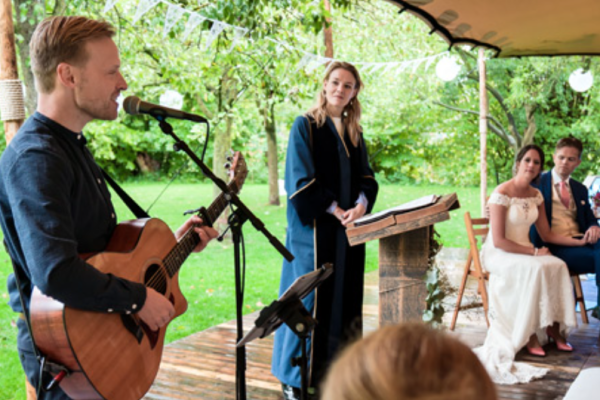 Bruiloft zanger ceremonie Jullie ceremonie wordt natuurlijk een heel bijzonder en persoonlijk moment. Daar hoort dan ook persoonlijke muziek bij. Liedjes waar jullie samen wat mee hebben en die jullie verhaal vertelt. En om dit unieke moment nog wat extra’s te geven is live muziek van een bruiloft zanger natuurlijk een super origineel idee! Als huwelijksceremonie zanger breng ik tijdens